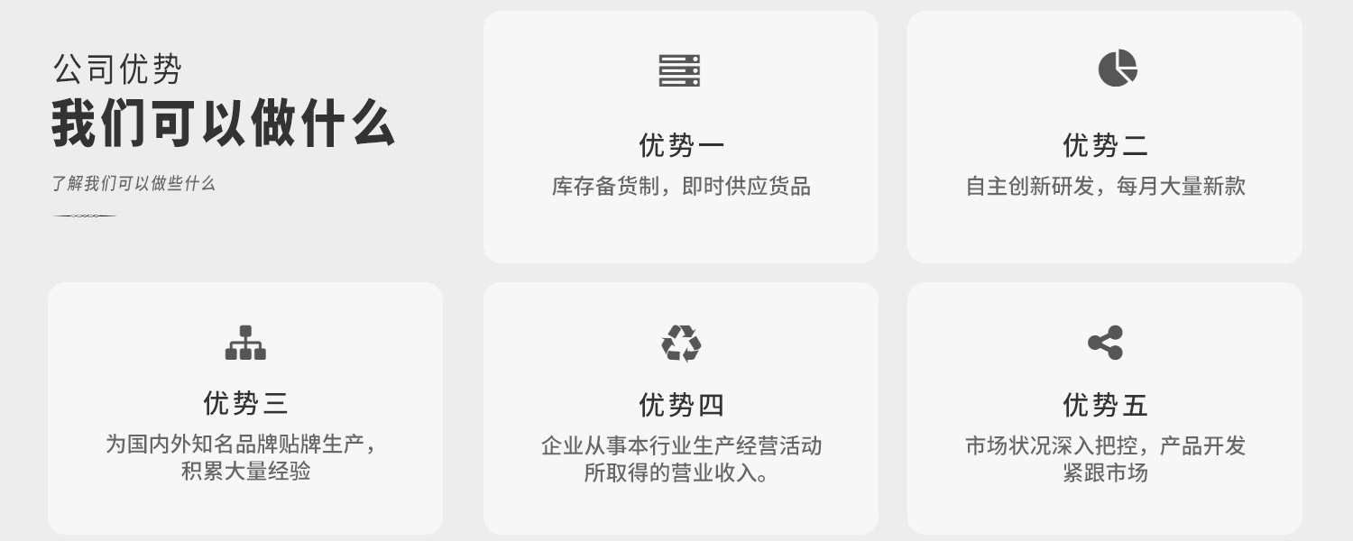 • 汕头市震隆制衣有限公司创建于2009年,秉承先进的“诚信、务实、开拓、创新”经营理念,采取了为国内外知名品牌生产来充分积累经验,总结研发信息,以及对市场状况的深入了解,准确分析经公司领导人决策,厚积薄发,整合资源,公司本着以创造舒适健康而又时尚的内裤的宗旨而兢兢业业的打造每一件完美的内裤,以优质的质量与信誉得各界人士认可。