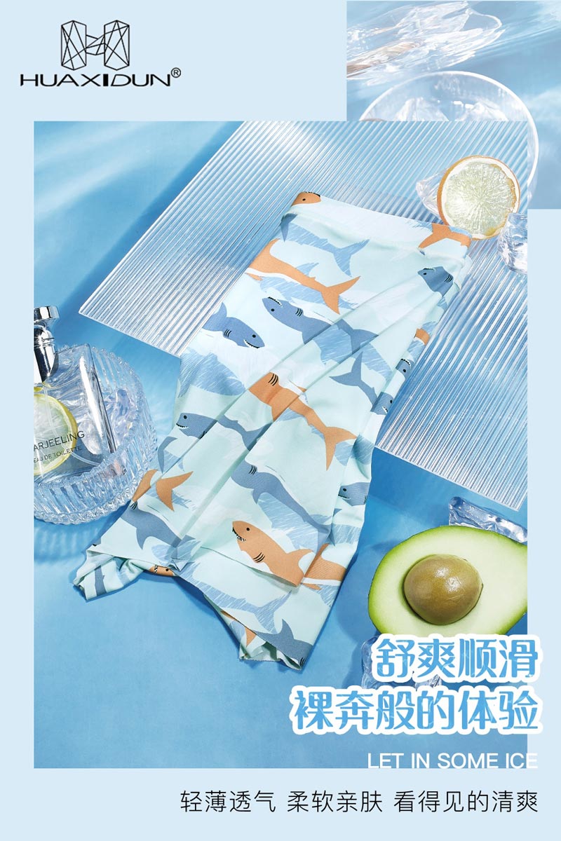 0537#锦纶随意裁无痕冰丝#缤纷多彩鱼儿 梦幻世界蓝色海洋舒适不卷边,